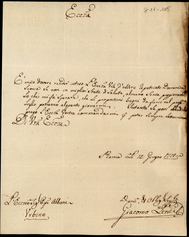 Lettere ricevute in Urbino dal Signor Principe Orazio Albani ultimo di questo nome nell'anno 1771