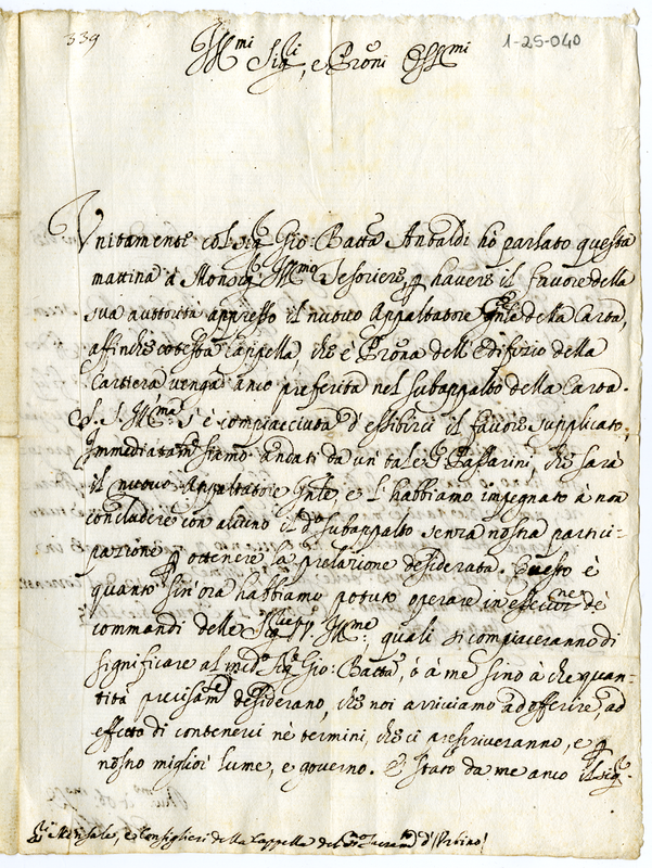 | dc.description | Interesse da parte di Giovanni Francesco Albani per la concessione del subappalto della cartiera alla Cappella de Santissimo Sacramento di Urbino | |