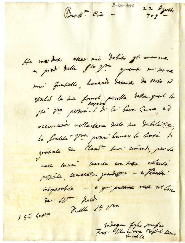 Lettera di frate Illuminato Riformato di San Francesco a papa Clemente XI (1707 agosto 22)