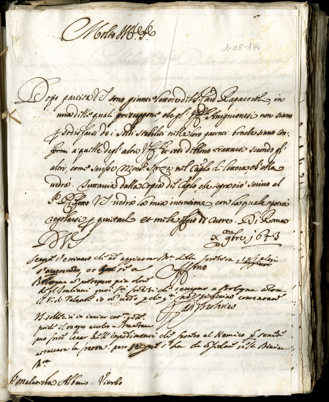 Lettera del cardinale Barberini Francesco senior a Malatesta Albani (1643 novembre 10)