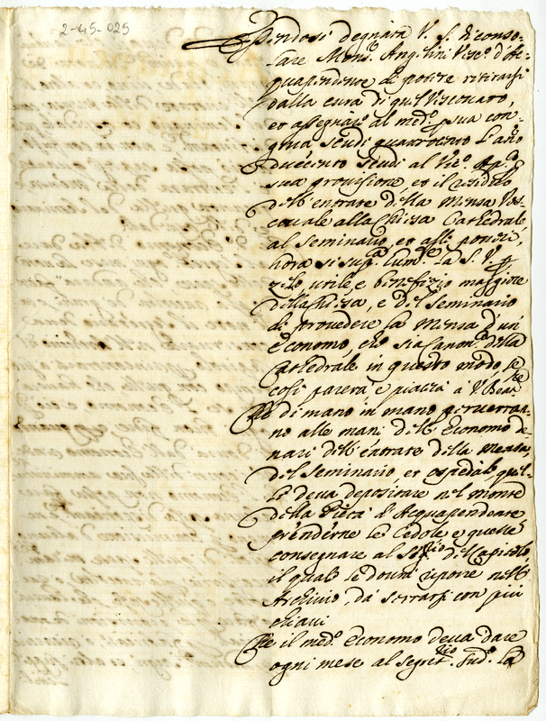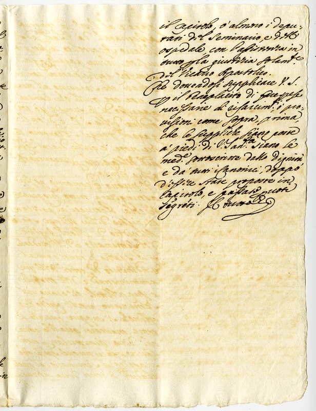 Disposizioni relative alla accettazione della domanda di monsignor Angelini vescovo di Acquapendente di lasciare la sua diocesi e ritirarsi in convento (1709)