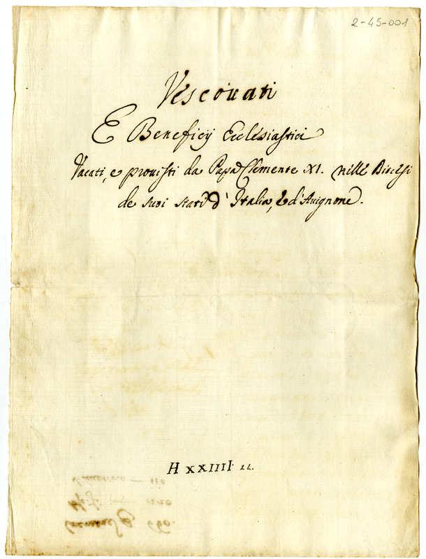 Vescovati e Beneficii Ecclesiastici vacati, e provvisti da Papa Clemente XI nelle Diocesi de suoi Stati d'Italia, e d'Avignone (1700-1721)