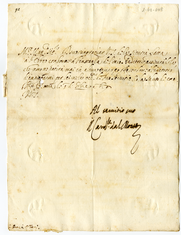 Lettera del cardinale Dal Monte ad Orazio Albani (1619 ottobre 5)
