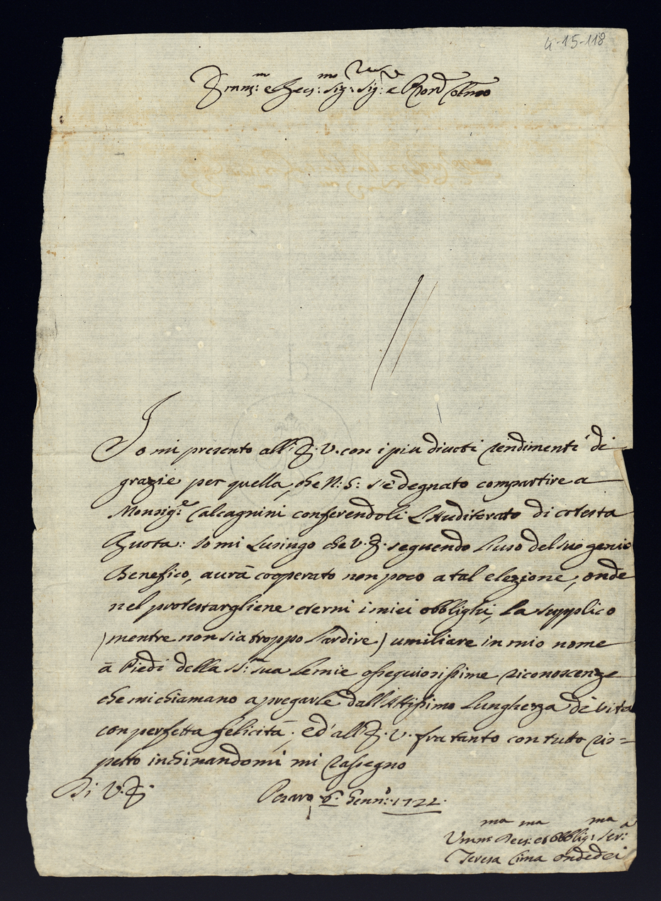 Lettere di complimento e di negozio. Semestre primo. Gennaio