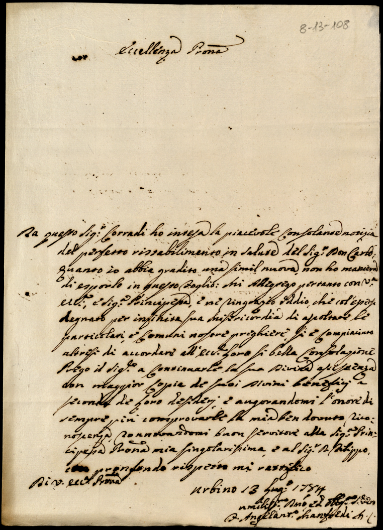 Lettere diverse ricevute in Colbordolo, Pesaro e Senigallia nel 1784