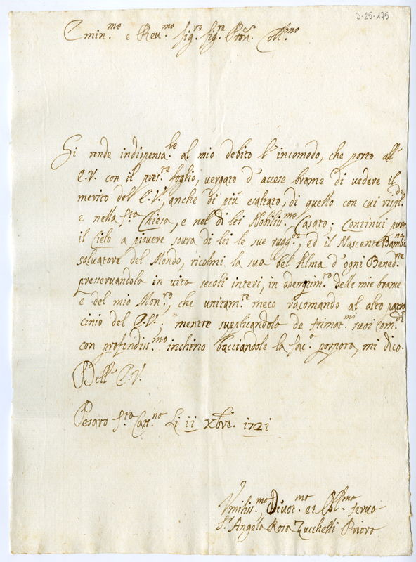 Lettera di suor Angela Rosa Zucchetti al cardinale Annibale Albani (1721 dicembre 11)