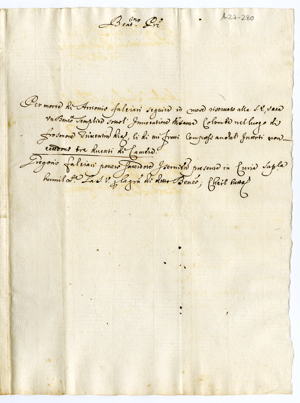 Lettera di Gregorio Falciari a papa Innocenzo XII (1694)