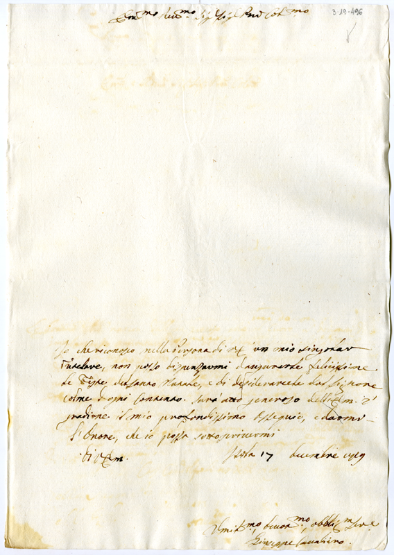 Lettera di Giuseppe Cavaliero ad Annibale Albani (1719 dicembre 17)