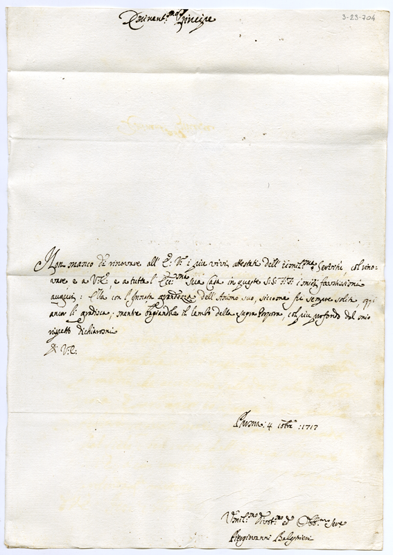 Lettera di Piergiovanni Balestrieri al cardinale Annibale Albani (1717 dicembre 4)