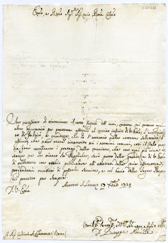 Lettera di Giuseppe Mormile al cardinale Annibale Albani (1729 dicembre 17)