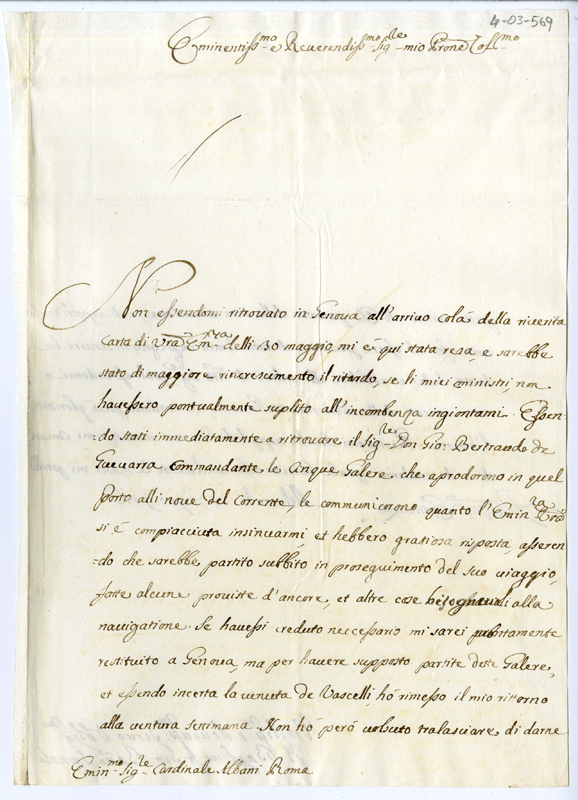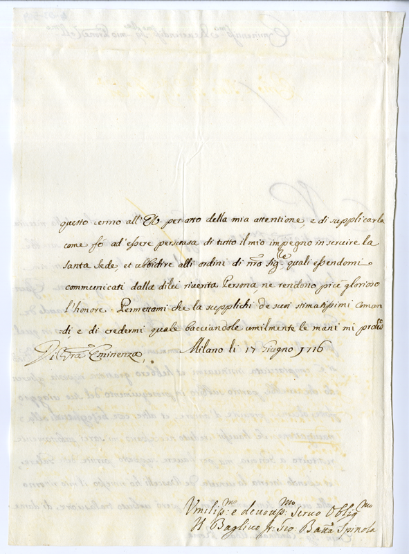 Lettera di Giovanni Battista Spinola al Cardinale Annibale Albani (1716 giugno 17)