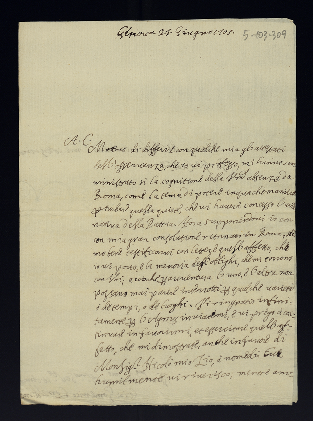 Lettere domestiche e confidenziali. 1701 - 1705