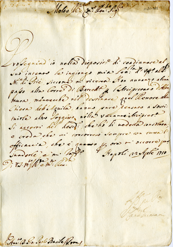 Lettera del cardinale Grimani a don Giovanni Paolo Basile (1710 aprile 22)