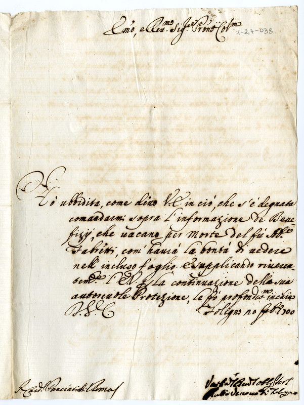 Lettera del Vescovo Giulio di Foligno al Cardinale Panciatici (1700 febbraio 20)