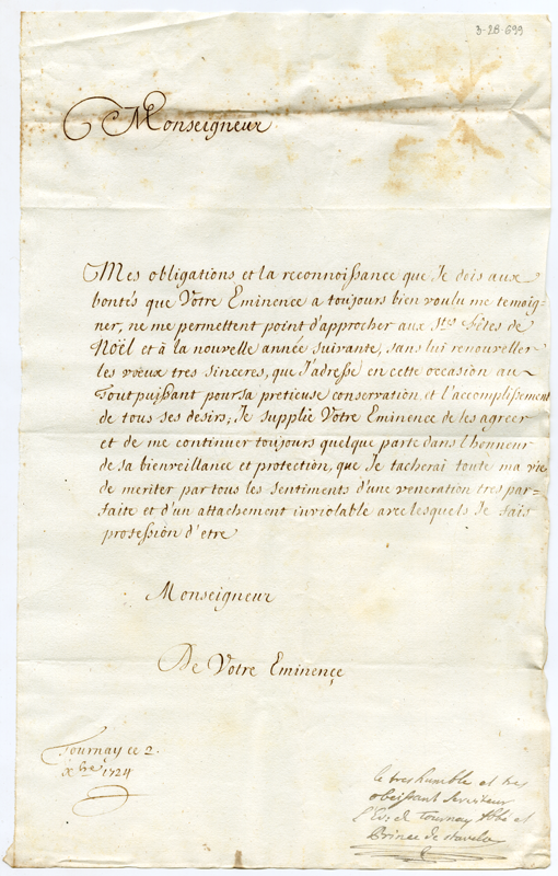 Lettera al cardinale Annibale Albani (1724 dicembre 2)