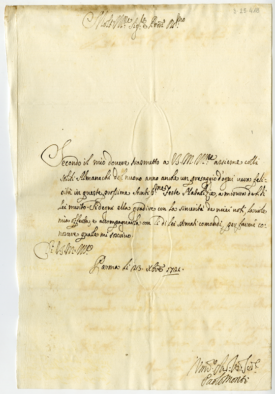 Lettera di Paolo Monti al cardinale Annibale Albani (1721 dicembre 23)