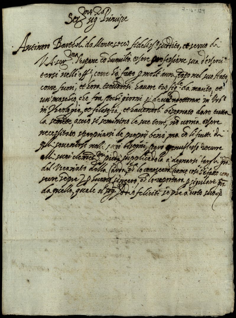 Lettere, memoriali al Serenissimo Principe d'Urbino appartenenti alla carica di segretario di Giustizia