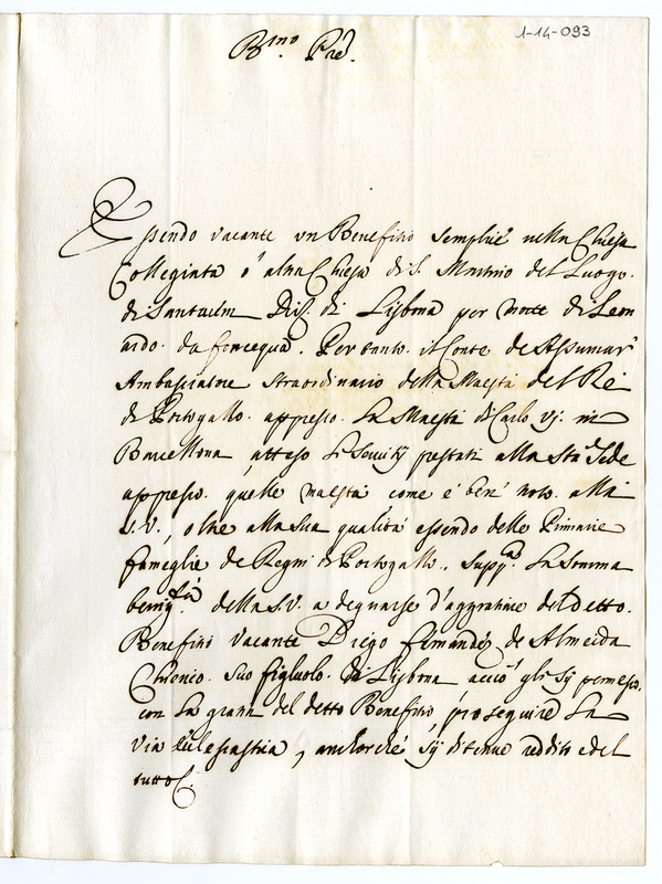 L'ambasciatore del re di Portogallo chiede al pontefice un benificio vacante della chiesa di Lisbona