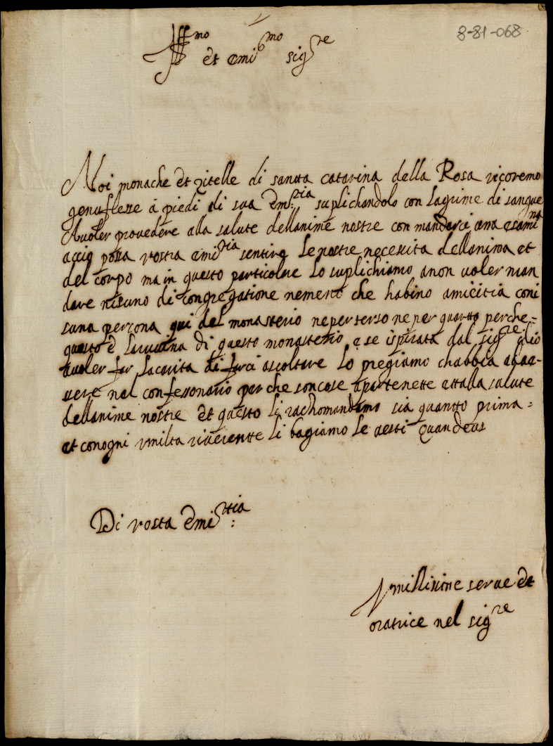 Memoriali diversi diretti al signor cardinale S. Onofrio