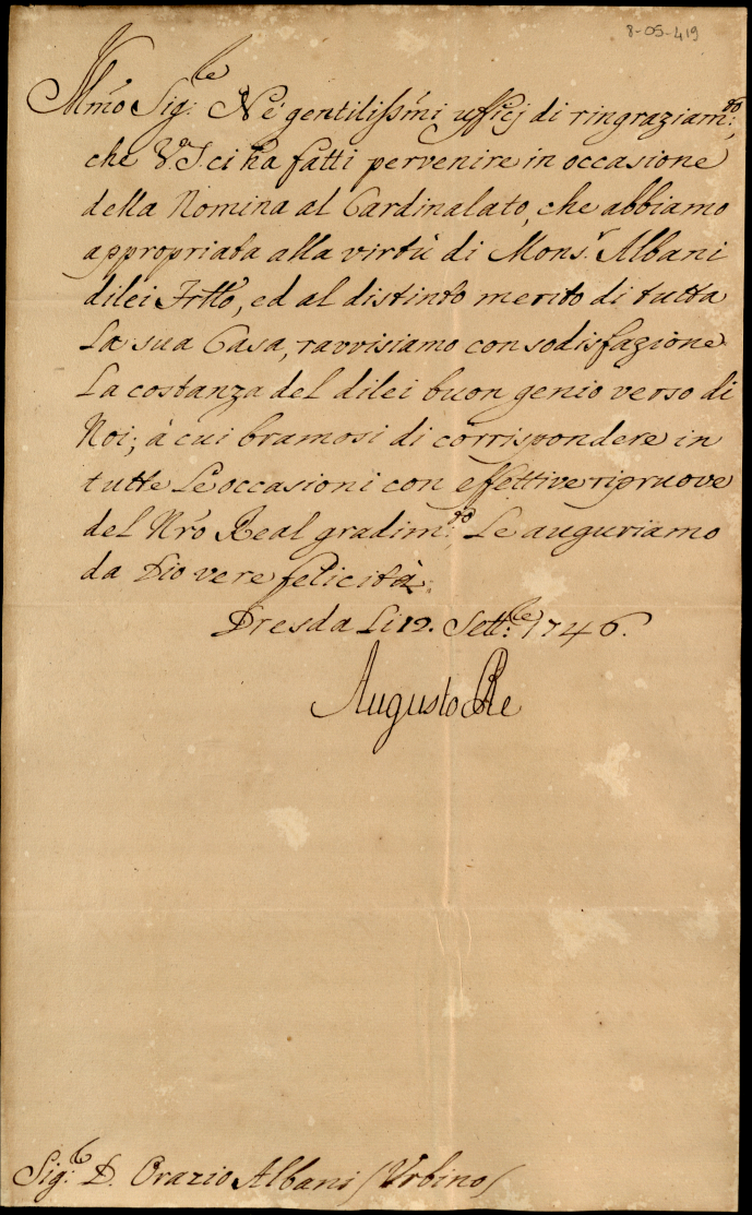 Lettere ricevute in Urbino dal Signor Principe Orazio Albani ultimo di questo nome nell'anno 1746
