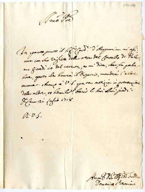 Lettera di Domenico Bernini a papa Clemente XI (1718 luglio 21)