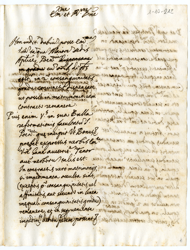 Quesito su una questione giuridica indirizzata ad un cardinale (1605-1651)