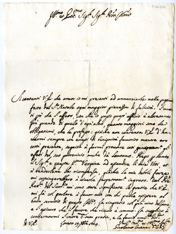 Lettera di Girolamo Cocanari ad Annibale Albani (1704 dicembre 19)