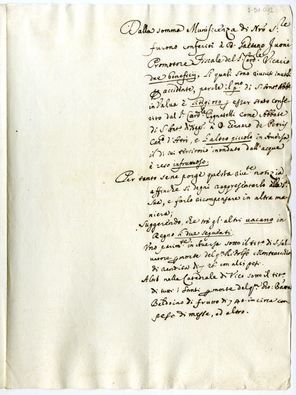 Lettera a papa Clemente XI per beneficare don Gaetano Tuoni (1700-1721)