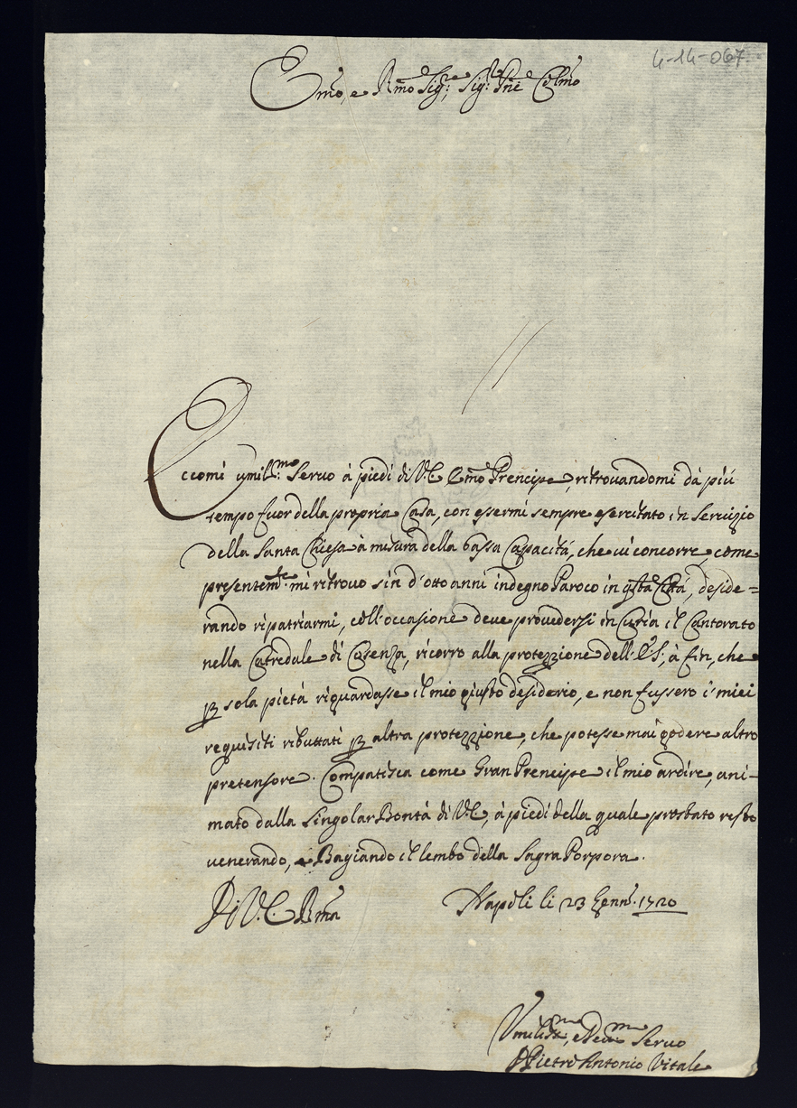 1720. Gennaio. Lettere di complimento e di negozio. Semestre primo