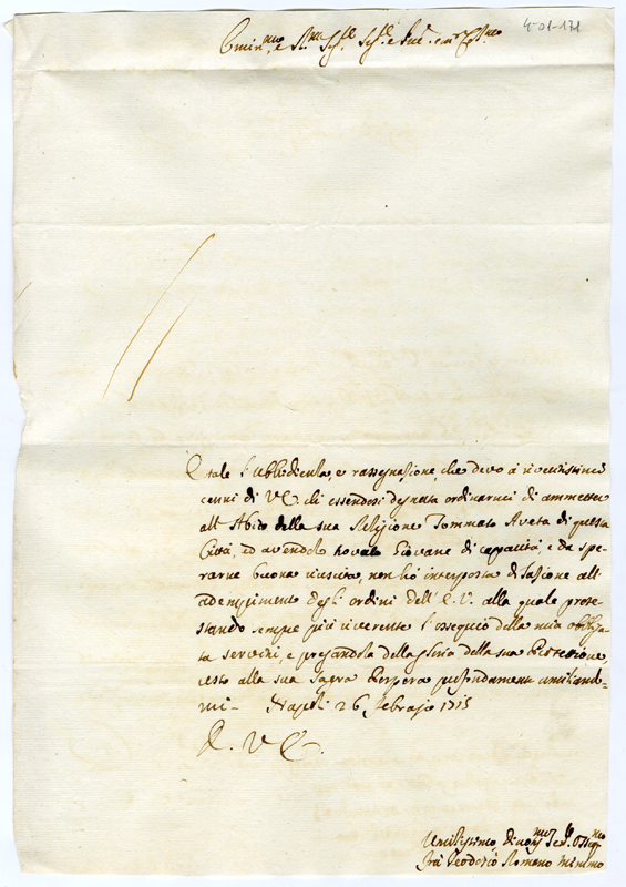 Lettera di fra Teodosio Romano minimo al Cardinale Annibale Albani (1715 febbraio 26)