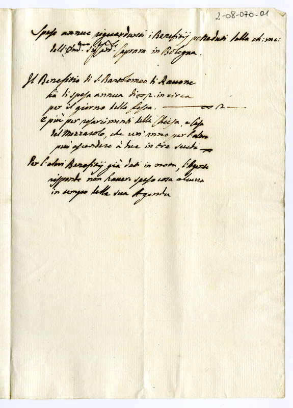 Spese annue riguardanti i Benefitii posseduti dalla chiara memoria dell'Eminentissimo Signor Cardinale Caprara in Bologna (1706-1711)