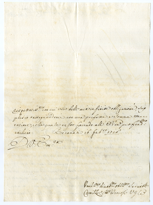 Lettera di Camillo Lorenzo Terrosi al Cardinale Annibale Albani (1716 febbraio 16)
