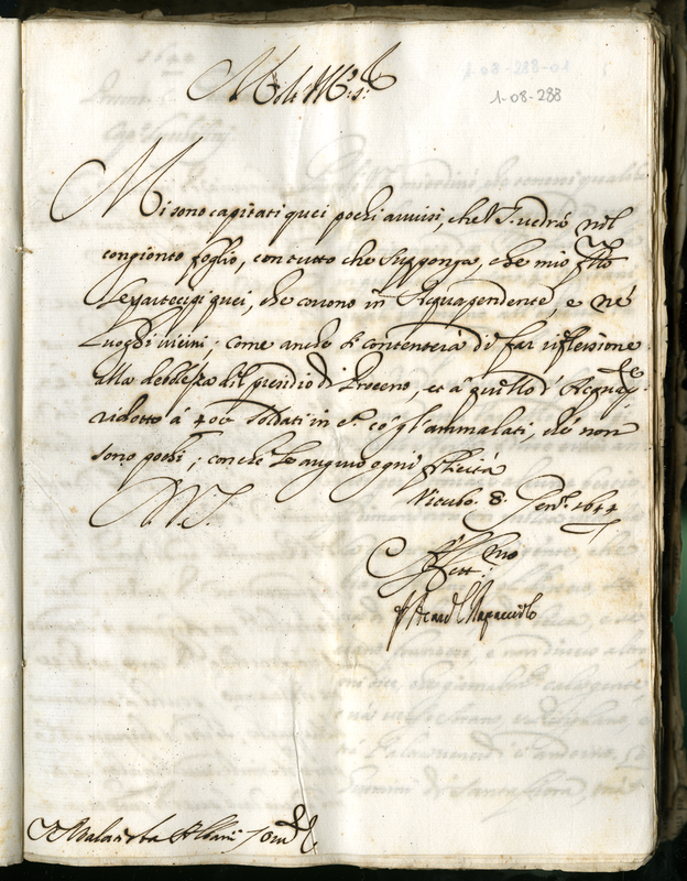 Lettera del cardinale Rapaccioli Francesco Angelo a Malatesta Albani (1644 gennaio 8)