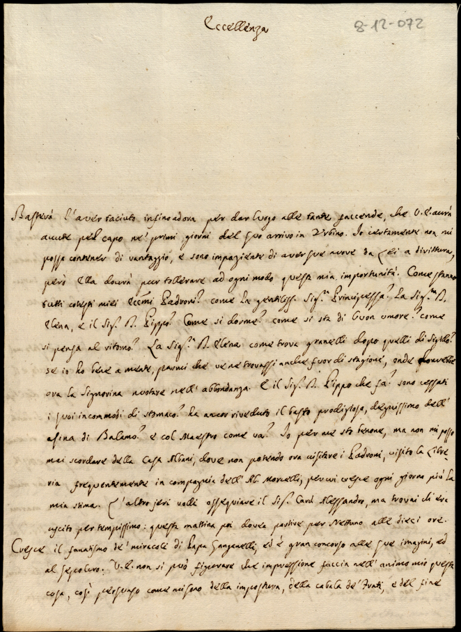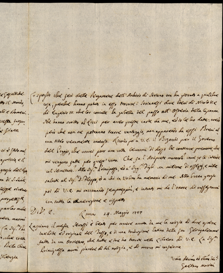 Lettere ricevute in Urbino nella permanenza in Urbino nei mesi di maggio, giugno e luglio 1777