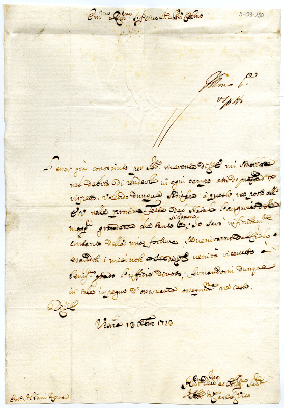 Lettera dell'abbate di Castel Vico al cardinale Annibale Albani (1713 dicembre 13)