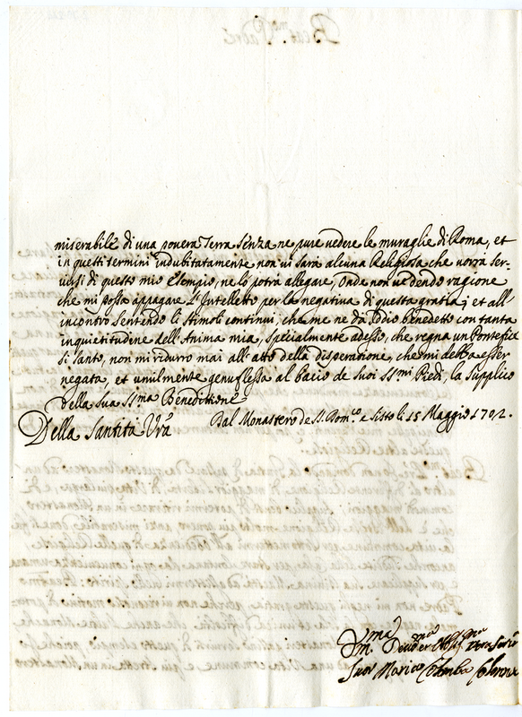 Lettera di suor Maria Colomba Colonna a Clemente XI (1702 maggio 15)