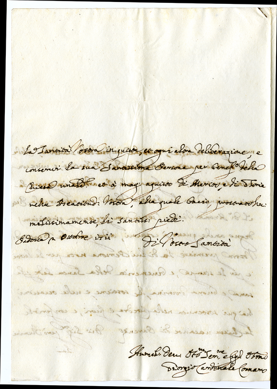 Attestato dei requisiti morali ed intellettuali del cardinale Giorgio Cornaro a favore di Antonio Vaira professore di diritto canonico dell'Università di Padova per la sua elezione a vescovo di Parenzo.