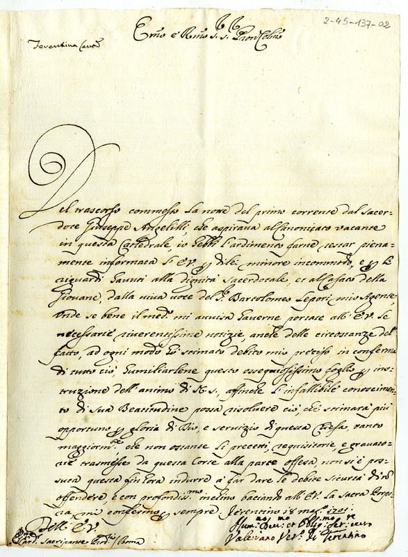 Notizie circa il trascorso commesso dal sacerdote Giuseppe Angelilli rilasciate dal vescovo di Ferentino (1701 maggio 18)