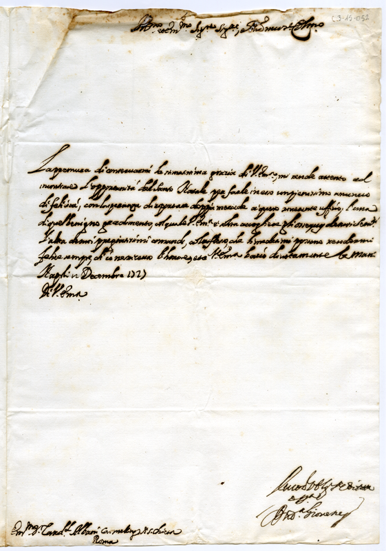 Lettera di Andrea Giovene al cardinale Annibale Albani (1727 dicembre 12)