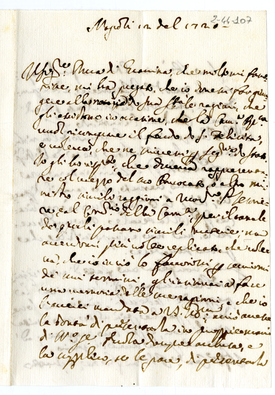 Lo scrivente esprime il desiderio del duca di Gravina di rappresentare a Sua Santità le sue ragioni sul fondo di Santa Felicità. Altre notizie (1720 gennaio 12)