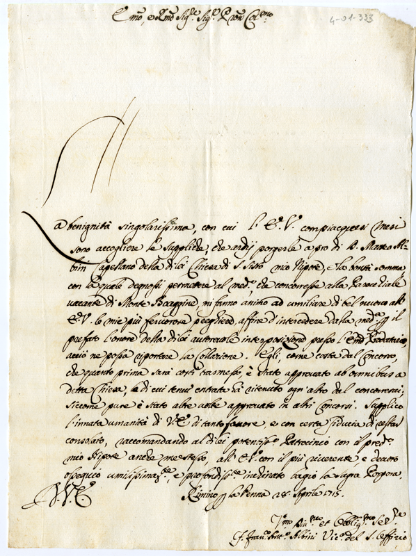 Lettera di Francesco Antonio Albini al Cardinale Annibale Albani (1715 aprile 28)