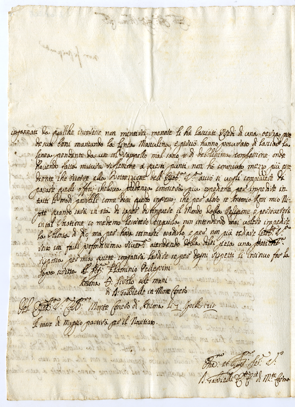 Lettera di fra Gabriele di Monte Conero al Cardinale Annibale Albani (1715 aprile 7)