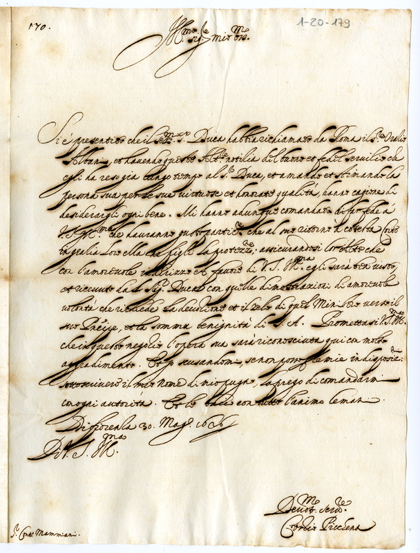 Lettera di Curzio Picchena al conte Mamiani (1626 maggio 30)