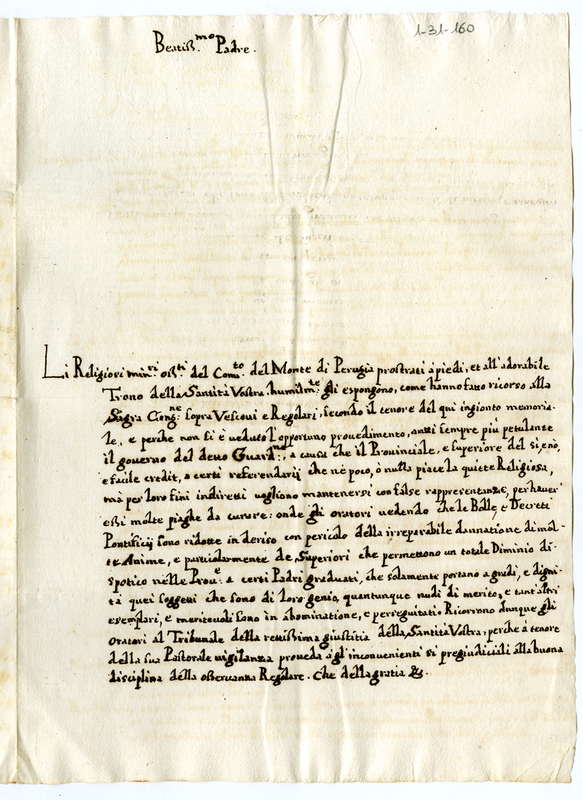 Archivio Albani|"Scritture spettanti alli frati dell'ordine de minori Conventuali, Osservanti, Riformati, Capuccini"|"Osservanti, e Riformati (1)"|Documenti contenuti