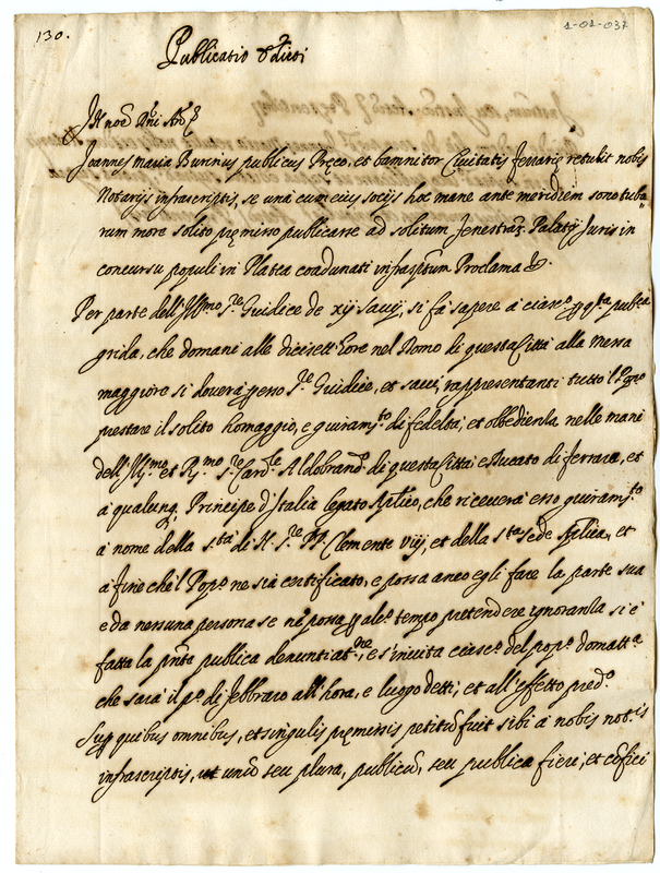 Editto pubblicato dal cardinale Aldobrandini a Ferrara e in altri luoghi del ducato dopo la devoluzione alla Santa sede Apostolica.