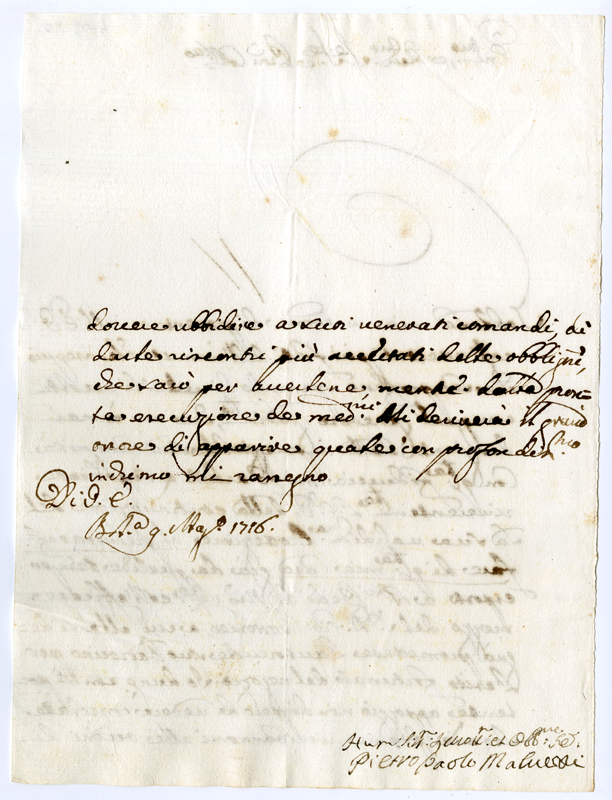 Lettera di Pietro Paolo Malvezzi al Cardinale Annibale Albani (1716 maggio 9)