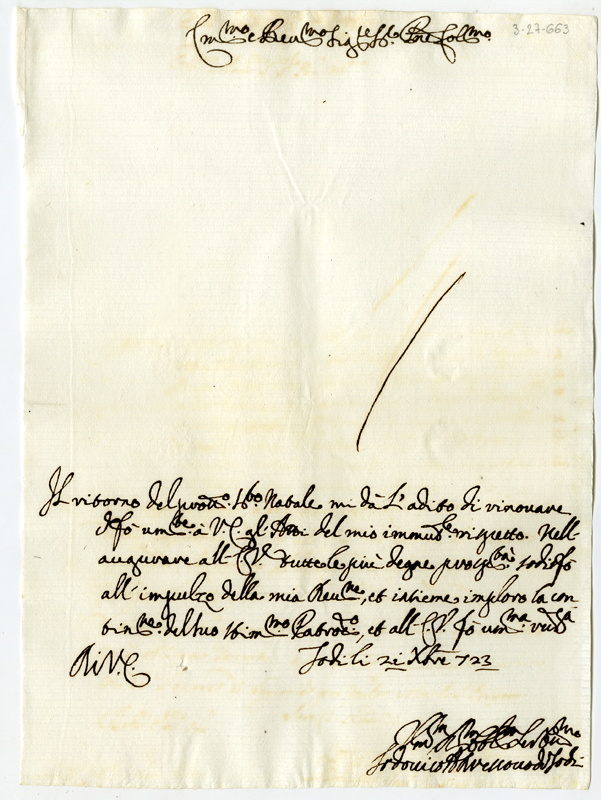 Lettera di Ludovico vescovo di Todi al cardinale Annibale Albani (1723 dicembre 21)