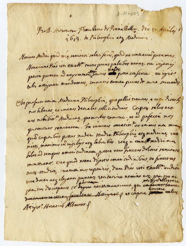 Pro D. Hieronimo Franchino de Penna Billorum die 17 aprilis 1613. In philosophia atque medicina