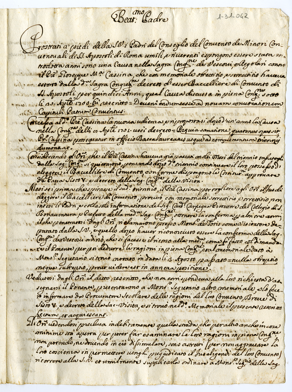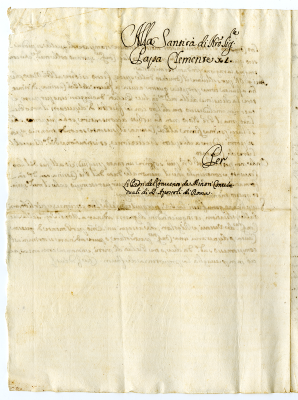 Lettera dei padri del convento dei minori conventuali dei SS. Apostoli di Roma a Clemente XI (1700-1721)