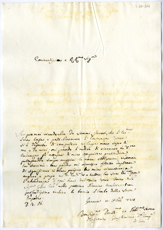 Lettera di visconte Giustiniani al cardinale Annibale Albani (1728 dicembre 11)